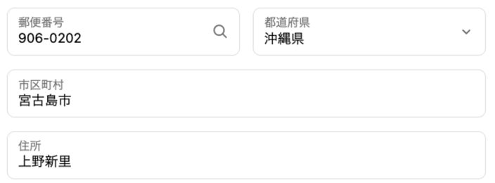 〒906-0202 沖縄県 宮古島市 上野新里を入力した結果、